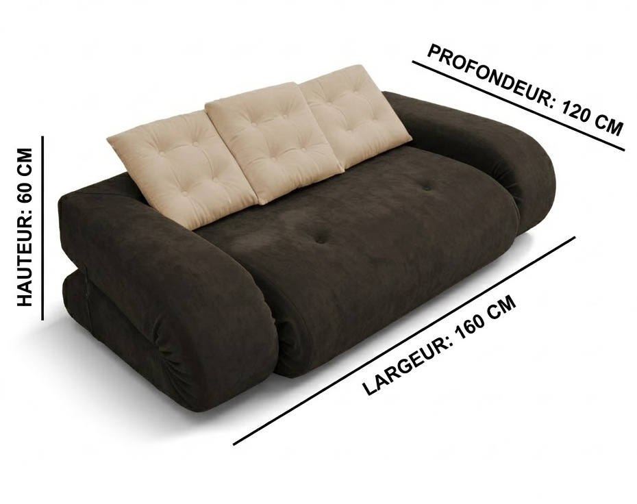 Le canapé OKOA s’impose comme l’alliance parfaite entre audace esthétique et fonctionnalité moderne. Plus qu’un simple sofa, c’est un canapé-lit ingénieux conçu pour transformer votre salon en un espace multi-fonction sans jamais sacrifier le style. Sa silhouette sculpturale, caractérisée par des formes arrondies et des lignes dynamiques, en fait la pièce centrale idéale d’un intérieur qui valorise autant le design que l’usage quotidien.